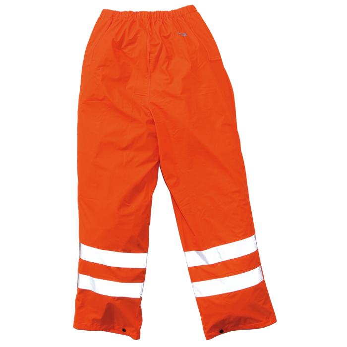Really comfortable rain pants with elastic waist. 2 pockets. Robust flexible seams. Push button adjustment at the ankle. With reflections, you'll be seen at a really long distance.