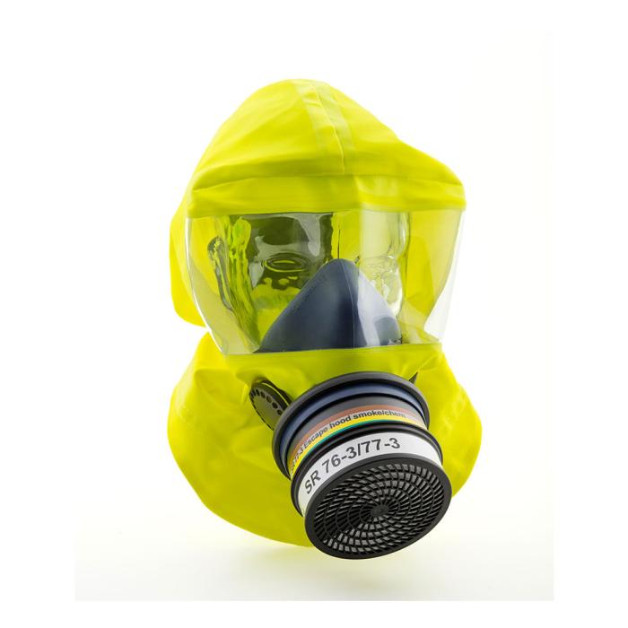 The escape hood SR 77‑3 ABEK1-CO-P3 Smoke is designed for use as respirator during evacuation in the event of a fire or chemical emission accidents.